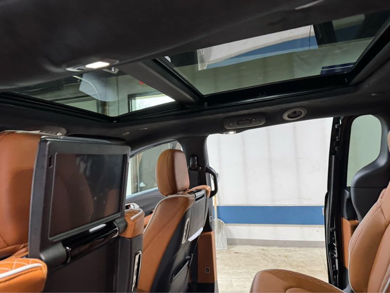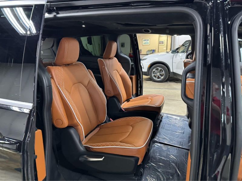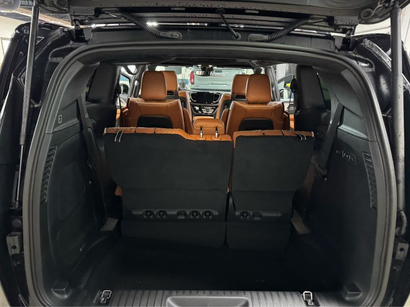Nav System, Moonroof, Third Row Seat, Entertainment System, Heated Leather Seats, Hitch, Aluminum Wheels. Diamond Black Crystal Pearlcoat exterior and Sepia/Black interior, Pinnacle trim. FUEL EFFICIENT 28 MPG Hwy/19 MPG City!