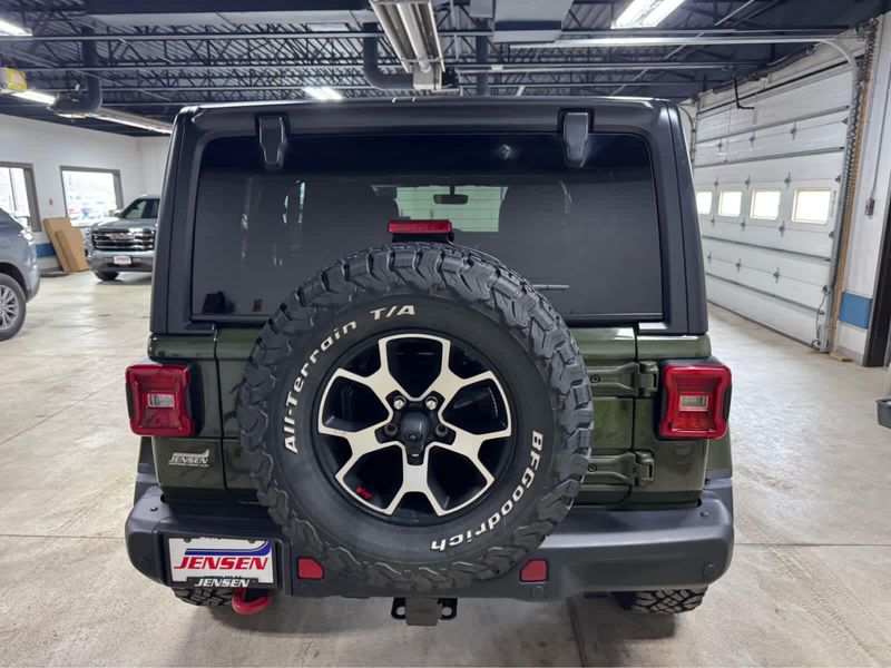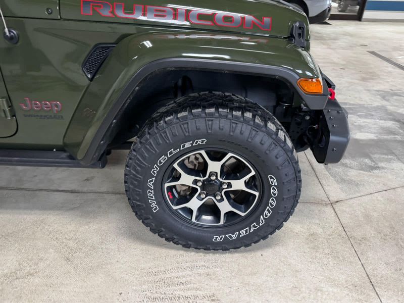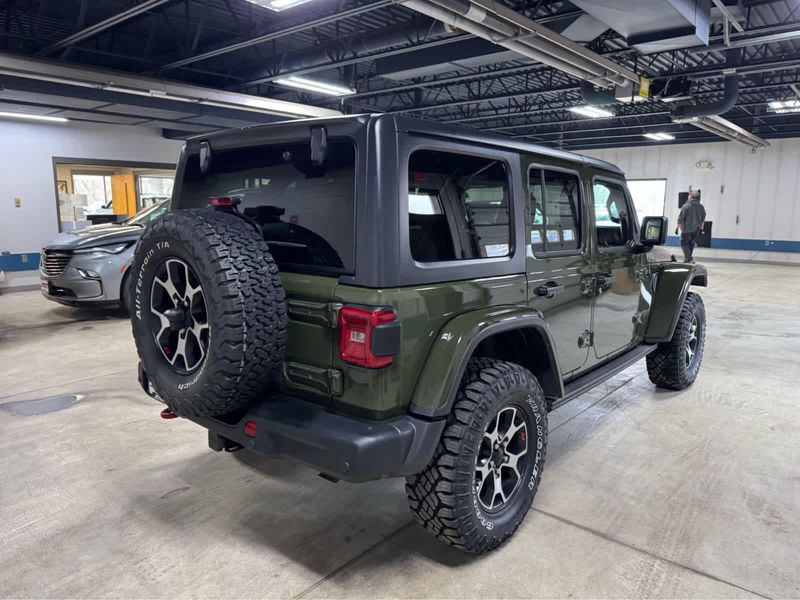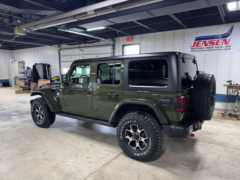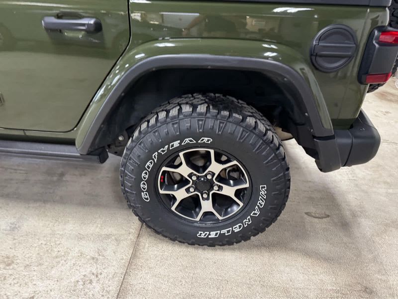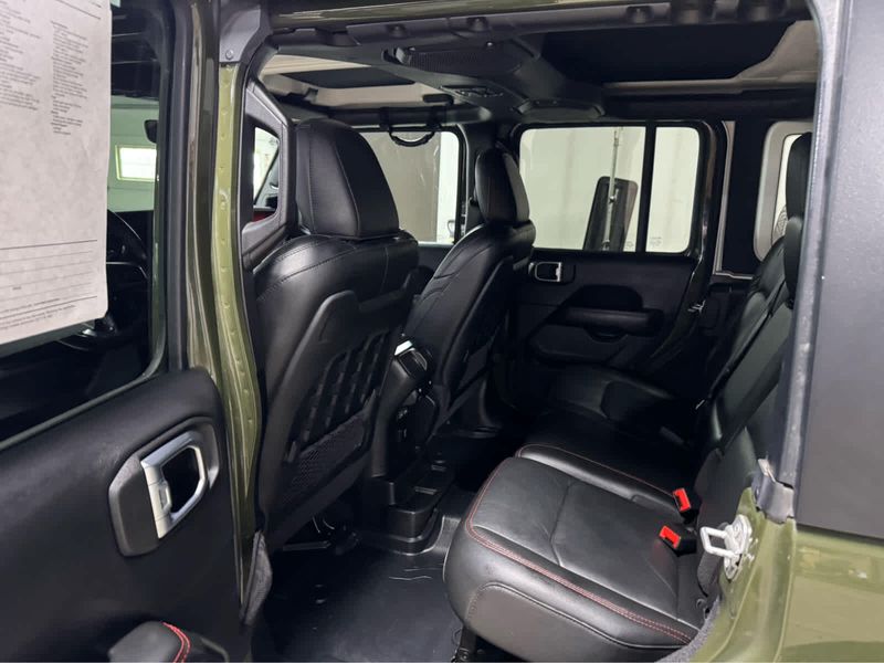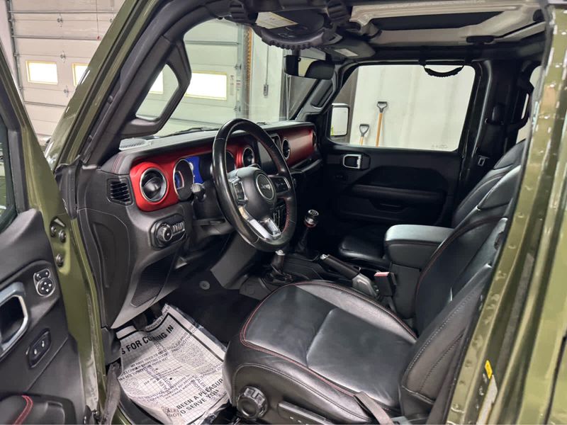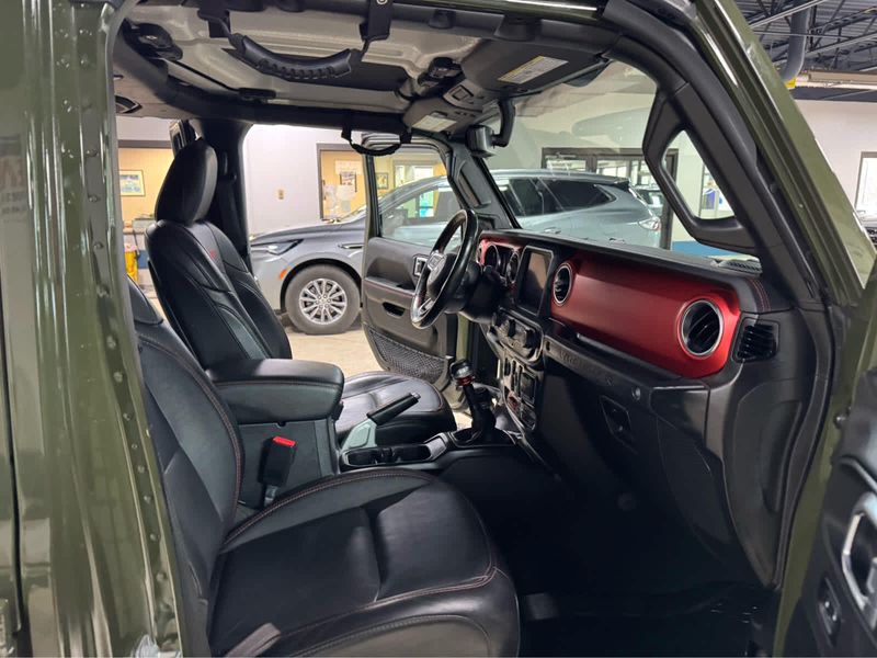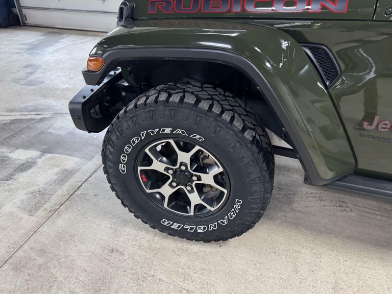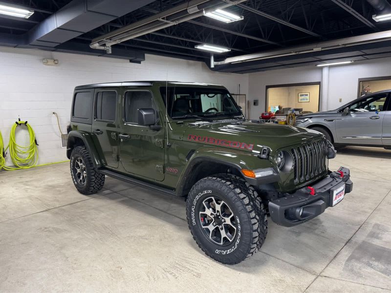 CARFAX 1-Owner. New Tires Heated Leather Seats, CD Player, iPod/MP3 Input, Back-Up Camera, 4x4, Aluminum Wheels, Trailer Hitch, MOPAR HD ROCK SLIDER W/STEP ASSIST, BLACK 3-PIECE HARD TOP, ENGINE: 3.6L V6 24V VVT UPG I W/ESS, SAFETY GROUP KEY FEATURES INCLUDE4x4, Back-Up Camera, iPod/MP3 Input, CD Player, Aluminum Wheels. Jeep Unlimited Rubicon with Sarge Green Clearcoat exterior and Black interior features a V6 Cylinder Engine with 285 HP at 6400 RPM*. OPTION PACKAGES8.4 RADIO & PREMIUM AUDIO GROUP Off-Road Info Pages, SiriusXM Traffic Plus, Alpine Premium Audio System, HD Radio, Radio: Uconnect 4C Nav w/8.4 Display, For Details, Visit DriveUconnect.com, Rear View Auto Dim Mirror, 1-Year SiriusXM Guardian Trial, GPS Navigation, SiriusXM Travel Link, 4G LTE Wi-Fi Hot Spot, Emergency/Assistance Call, 8.4 Touchscreen Display, BLACK, LEATHER TRIMMED BUCKET SEATS Leather Wrapped Park Brake Handle, Leather Wrapped Shift Knob, Premium Door Trim Panel, BLACK 3-PIECE HARD TOP Freedom Panel Storage Bag, Rear Window Defroster, Rear Window Wiper/Washer, No Soft Top, LED LIGHTING GROUP Daytime Running Lamps LED Accents, Front LED Fog Lamps, LED Premium Reflector Headlamps, LED Taillamps, COLD WEATHER GROUP Heated Steering Wheel, Heated Front Seats, MOPAR HD ROCK SLIDER W/STEP ASSIST, SAFETY GROUP ParkSense Rear Park Assist System, Blind Spot & Cross Path Detection, TRAILER TOW & HD ELECTRICAL GROUP Class II Receiver Hitch, 700 Amp Maintenance Free Battery, 7 & 4 Pin Wiring Harness, 240 Amp Alternator, Auxiliary Switches, REMOTE PROXIMITY KEYLESS ENTRY, TRANSMISSION: 6-SPEED MANUAL (STD), ENGINE: 3.6L V6 24V VVT UPG I W/ESS (STD). EXCELLENT VALUEThis Wrangler is priced $1,100 below Kelley Blue Book. BUY WITH CONFIDENCECARFAX 1-Owner Pricing analysis performed on 3/24/2026. Horsepower calculations based on trim engine configuration. Please confirm the accuracy of the included equipment by calling us prior to purchase.