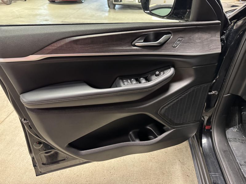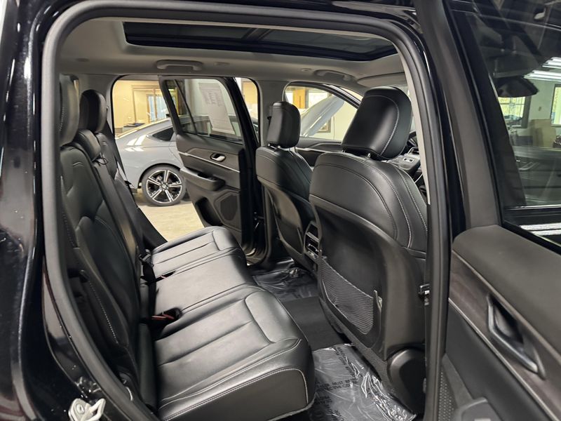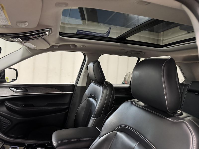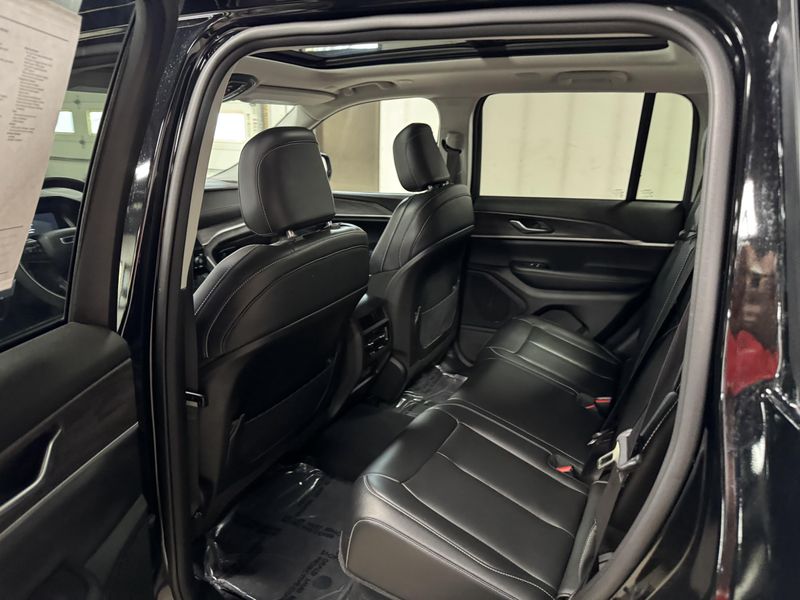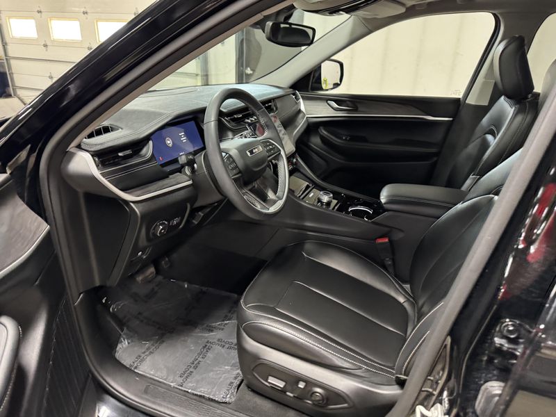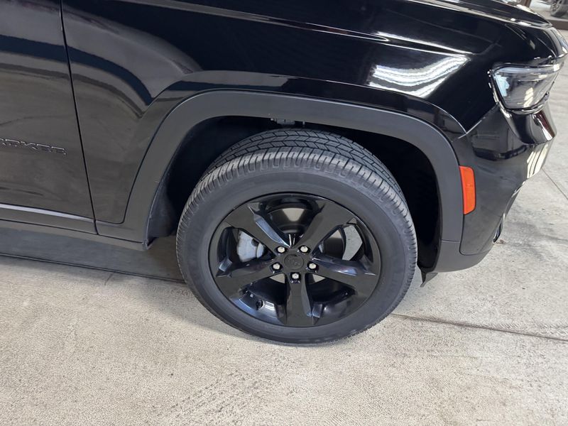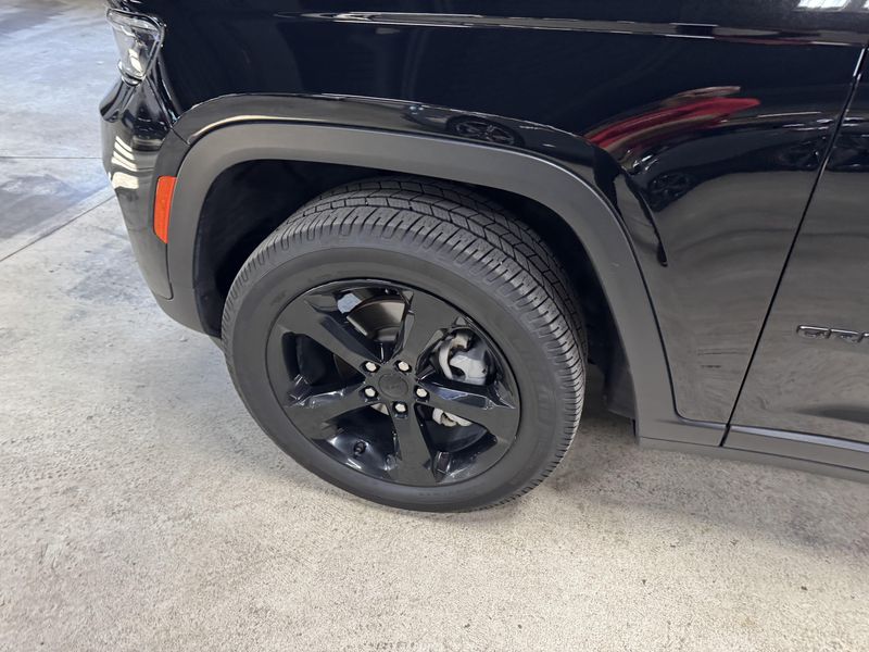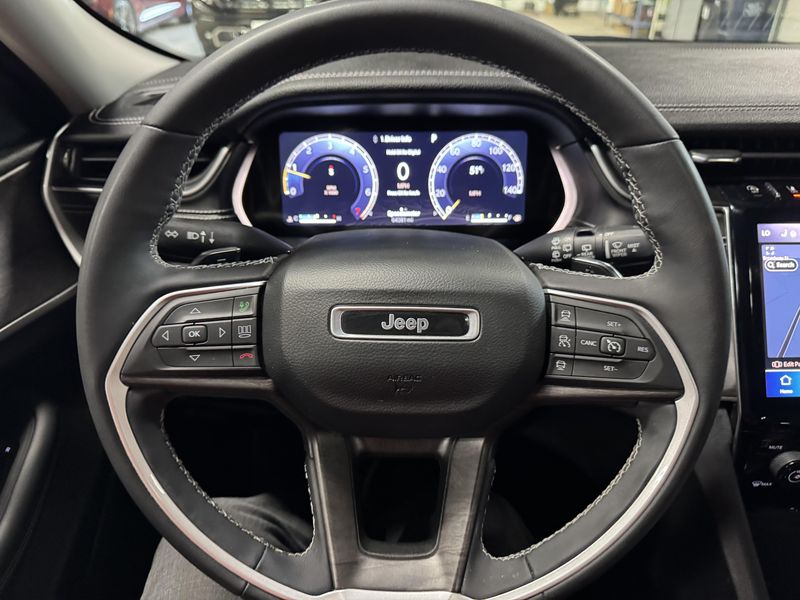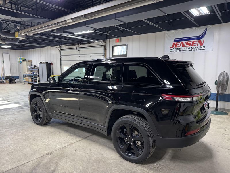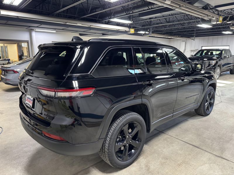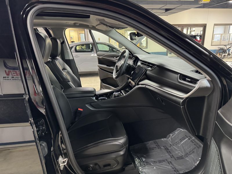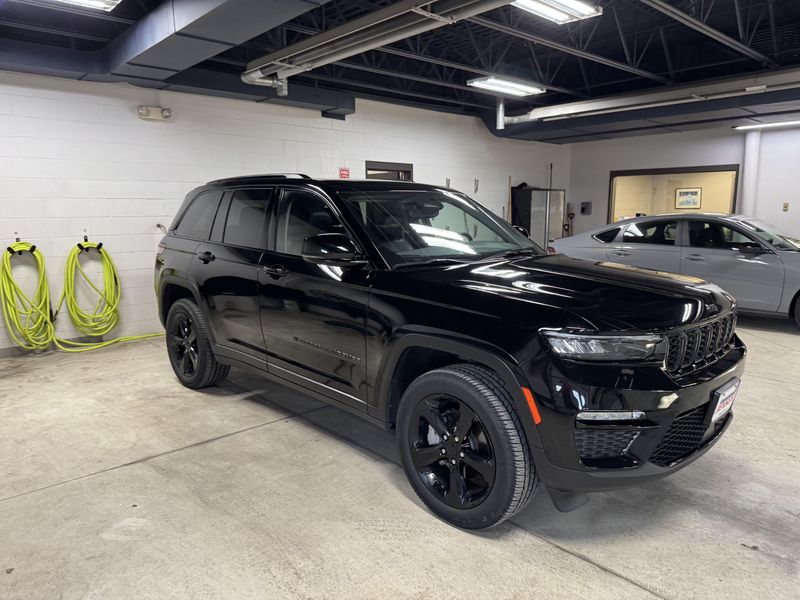 Drive in comfort and confidence with this sleek Black 2023 Jeep Grand Cherokee Limited 4x4 SUV. Equipped with a powerful Pentastar 3.6L V6 engine paired to an 8-speed automatic transmission, this Grand Cherokee delivers smooth performance and full-time 4WD capability. Enjoy premium features like leather upholstery, heated front and rear seats, a heated steering wheel, and a dual-pane panoramic sunroof for an upscale driving experience. Stay connected and entertained with a 10.1-inch Uconnect infotainment touchscreen, Apple CarPlay/Android Auto, Bluetooth, SiriusXM, and Wi-Fi hotspot. Advanced safety technologies include adaptive cruise control, lane keeping assist, blind spot monitoring, rear cross traffic alert, front/rear automatic emergency braking, and a rearview camera. Convenience is enhanced with remote engine start, power liftgate, and memory settings for the driver's seat. This Grand Cherokee combines rugged capability with luxury and advanced tech, making it the perfect SUV for any adventure.