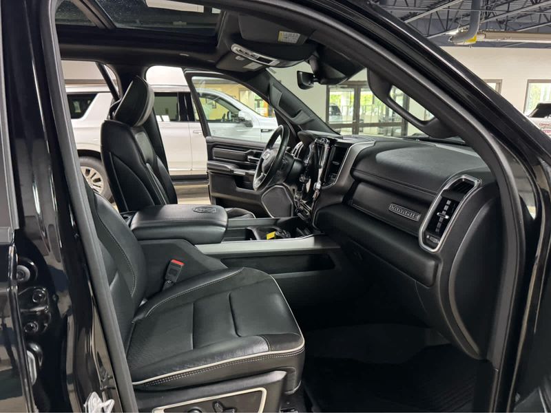 LARAMIE LEVEL B EQUIPMENT GROUP Rear Window Defroster, Blind Spot & Cross Path Detection, Rain Sensitive Windshield Wipers, ParkSense Front/Rear Park Assist w/Stop, Rear Power Sliding Window, 12 Touchscreen Display, Rear Underseat Compartment Storage, Front LED Fog Lamps, LED Reflector Headlamps, Foam Bottle Insert (Door Trim Panel), Radio: Uconnect 5 Nav w/12.0 Display, Remote Tailgate Release, harman/kardon 19 Speaker Premium Sound, Auto High Beam Headlamp Control, Electric Shift On Demand Transfer Case, Front Door Accent Lighting, 2nd Row In Floor Storage Bins, Rear Door Accent Lighting, NIGHT EDITION Accent Color Premium Power Mirrors, Black Headlamp Bezels, Sport Performance Hood, Wheels: 22 x 9 Forged Aluminum, Tires: 285/45R22XL BSW All Season, Black Exterior Truck Badging, Accent Color Door Handles, Black Interior Accents, Dual Exhaust w/Black Tips, Body Color Front Bumper, Grille Surround 3 Black Texture 2 Black, Body Color Rear Bumper w/Step Pads, RAM Grille Badge - Black, Black Painted Exterior Mirrors Caps, ENGINE: 5.7L V8 HEMI MDS VVT ETORQUE Active Noise Control System, Heavy Duty Engine Cooling, Passive Tuned Mass Damper, GVWR: 7,100 lbs, Dual Rear Exhaust w/Bright Tips, HEMI Badge, 23 Gallon Fuel Tank, 18 Aluminum Spare Wheel, ADVANCED SAFETY GROUP Adaptive Cruise Control w/Stop & Go, Auto High Beam Headlamp Control, Surround View Camera System, Parallel & Perp Park Assist w/Stop, Tailgate Ajar Warning Lamp, Pedestrian Emergency Braking, Lane Keep Assist, DUAL-PANE PANORAMIC SUNROOF LED Dome/Reading Lamp, Dome Dual LED Reading Lamp, BLACK, LEATHER TRIMMED BUCKET SEATS Bucket Seats, Center Console Parts Module, Full Length Upgraded Floor Console, CLASS IV RECEIVER HITCH, TRANSMISSION: 8-SPEED AUTOMATIC (8HP75), ANTI-SPIN DIFFERENTIAL REAR AXLE.
