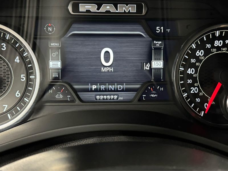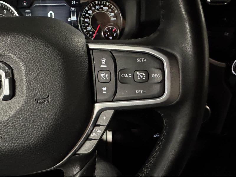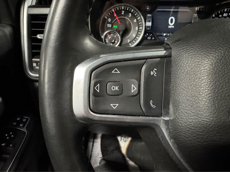 Rear Window Defroster, Blind Spot & Cross Path Detection, LED Tail Lamps, Power Adjustable Pedals, Leather Wrapped Steering Wheel, Rear Power Sliding Window, Rear Dome w/On/Off Switch Lamp, Front Fog Lamps, Glove Box Lamp, Auto Power-Folding Mirrors, Footwell Courtesy Lamp, Media Hub w/2 Charge Only USBs, Heated Front Seats, Mirror Running Lights, Heated Steering Wheel, Foam Bottle Insert (Door Trim Panel), Wheels: 18 x 8.0 Polished Aluminum, Dampened Tailgate, Security Alarm, Big Horn IP Badge, Power Adjustable Convex Aux Mirrors, Forward & Reverse Utility Lights, Locking Lower Glove Box, Remote Start System, Radio: Uconnect 5 Nav w/12.0 Display, Google Android Auto, Off-Road Information Pages, Selectable Tire Fill Alert, Trailer Tow Pages, Disassociated Touchscreen Display, HD Radio, Auto High Beam Headlamp Control, Rain Sensitive Windshield Wipers, Rear View Auto Dim Mirror, Adaptive Cruise Control w/Stop, Adaptive Steering System, Full Speed Forward Collision Warning Plus, Lane Keep Assist, Storage Tray, Rear 60/40 Folding Seat, Front Armrest w/Cupholders, Remote USB Port - Charge Only, Front Center Seat Cushion Storage, Manual Adjust 4-Way Front Passenger Seat, Power Adjust 8-Way Driver Seat, Front Seat Back Map Pockets, Power 2-Way Driver Lumbar Adjust, CHROME FLAT CAB-LENGTH SIDE STEPS, 9 ALPINE SPEAKERS W/SUBWOOFER, Transfer Case Skid Plate Shield, Tow Hooks, (STD), (STD).