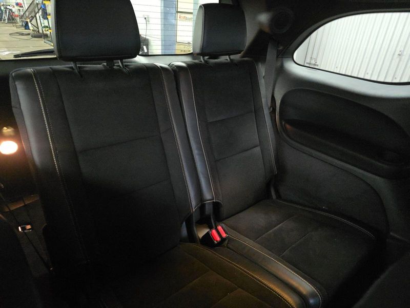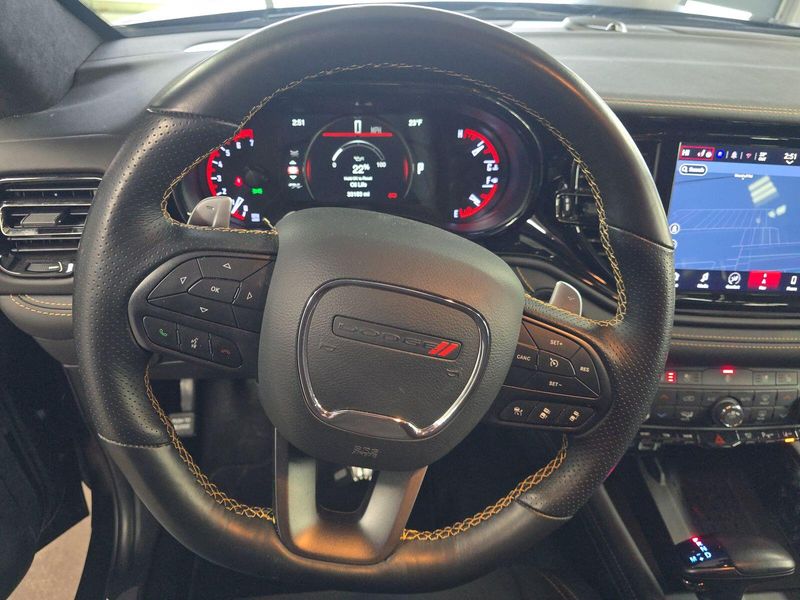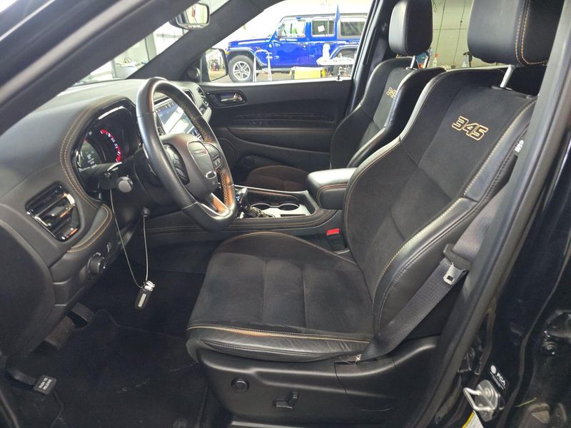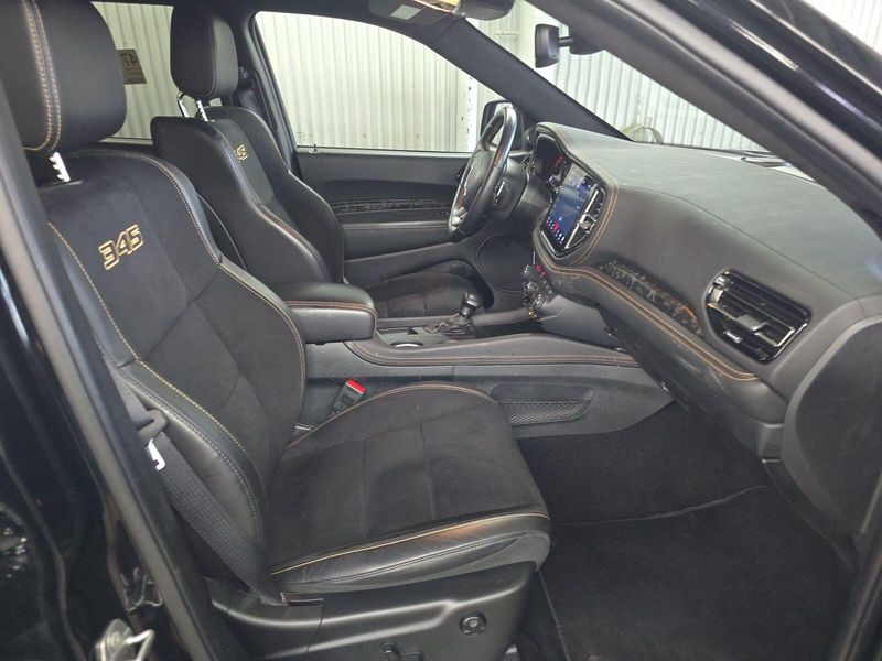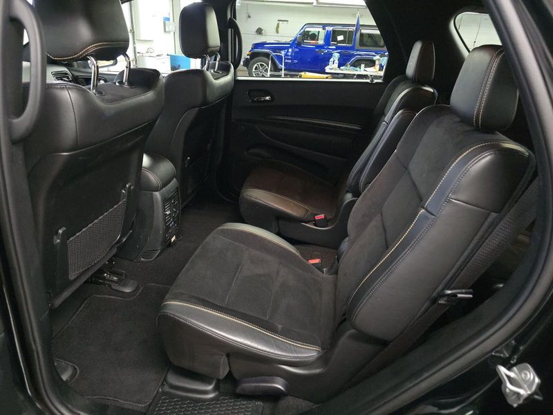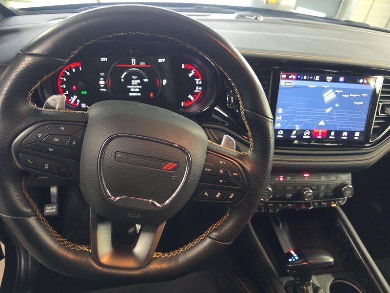 Experience power and luxury in the Black 2025 Dodge Durango AWD R/T 20th Anniversary Premium SUV. This Durango stands out with its legendary HEMI 5.7L V8 engine (360hp, 390 lb-ft torque), AWD capability, and 8-speed shiftable automatic transmission. Enjoy cutting-edge tech: a 10.1-inch Uconnect touchscreen, wireless Apple CarPlay/Android Auto, Harman/Kardon premium audio with 18 speakers, and a Wi-Fi hotspot. Safety is top-notch with adaptive cruise control, lane keeping assist, front/rear automatic emergency braking, blind spot monitoring with trailer coverage, and rear cross-traffic alert. Comfort features include heated/ventilated leather-trimmed front seats, heated rear seats, power glass moonroof, tri-zone climate control, and captain's chairs with third-row seating. Towing is a breeze with the Class IV hitch, trailer brake controller, and Tow N Go package. Premium touches like carbon fiber accents, LED lighting, Brembo brakes, and a power liftgate complete this exceptional SUV. Don't miss your chance to own a rare and versatile Durango-schedule your test drive today!